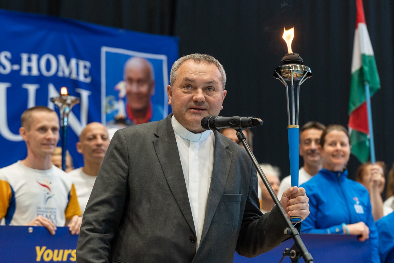 Megérkezett Pécsre a Vatikánból indult Békefutás fáklyája – Felföldi László püspök vette át