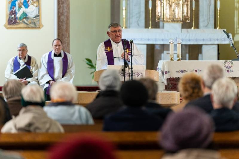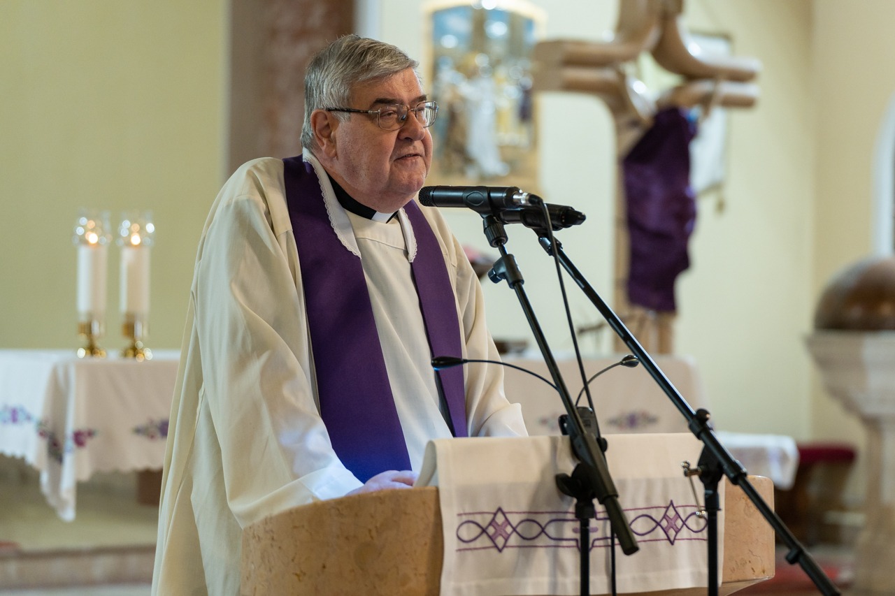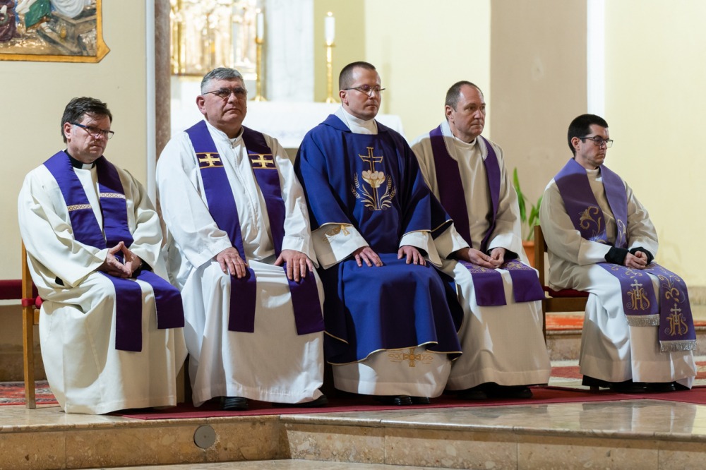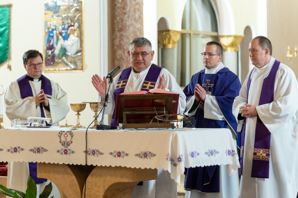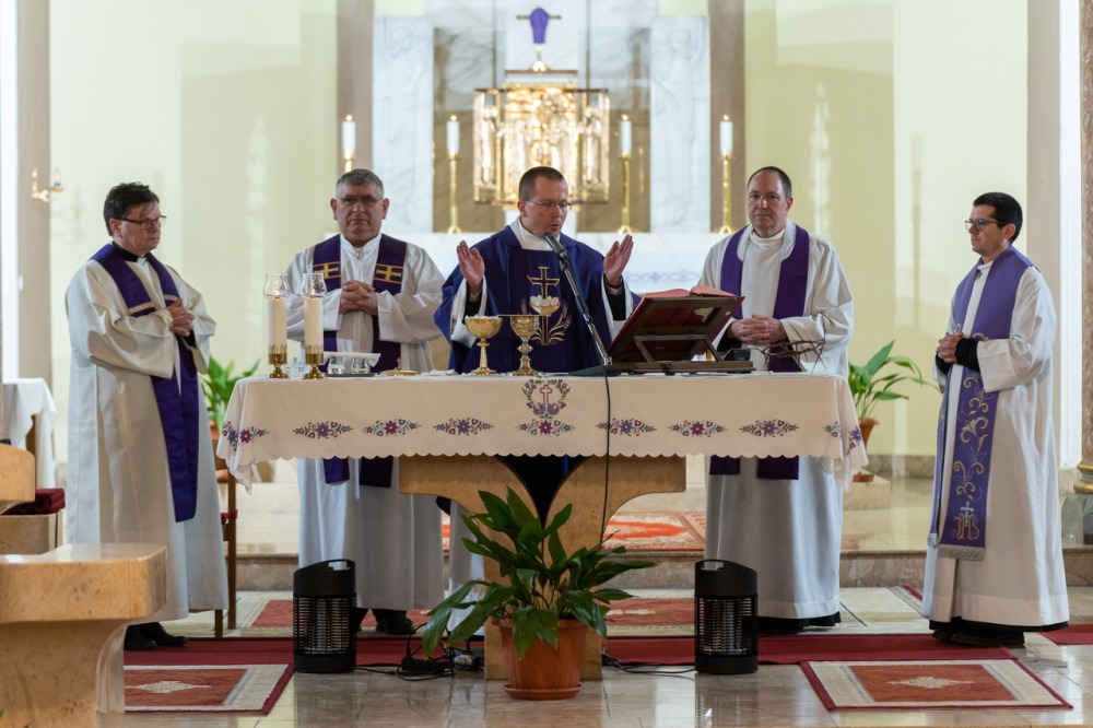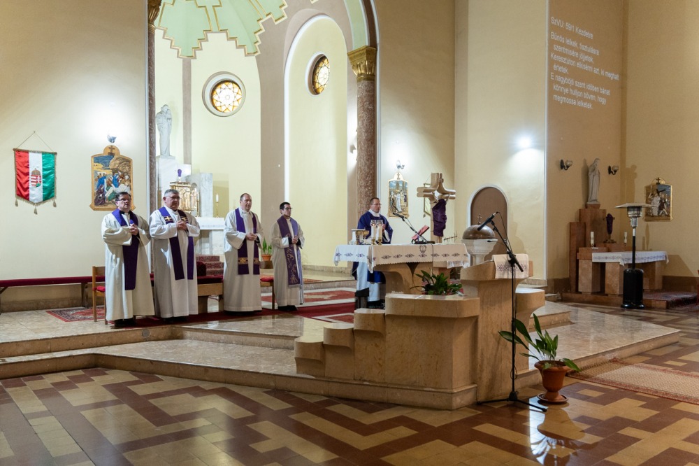 A lelki délutánt záró szentmisében Máger Róbert püspöki irodaigazgató, a székesegyház plébánosa lelkigyakorlatos szentbeszédében arra figyelmeztetett, hogy nagyheti utunk során kísérjük végig az Urat, legyünk mellette, ezáltal befogadva a nagyhét mondanivalóját, melynek történésein keresztül eljutunk a húsvéthoz, Jézus Krisztus föltámadásához.