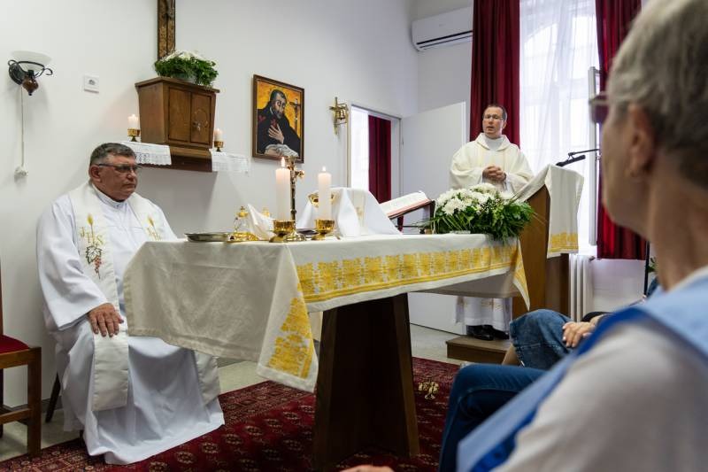 A plébános külön köszönetét fejezte ki az oltárterítő felajánlójának, valamint a Szent Kamillt ábrázoló festmény alkotójának, akik személyesen vettek részt a liturgián.