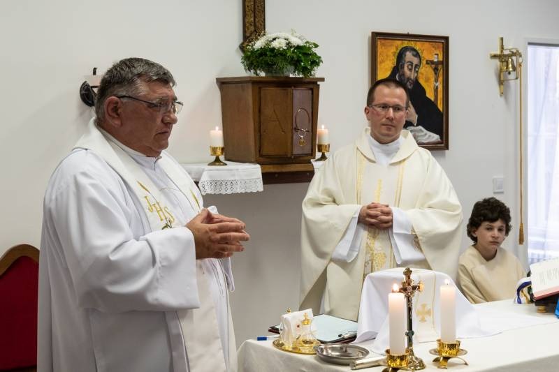 Az újonnan kialakított szakrális térben Máger Róbert vizet szentelt, majd a szentelménnyel megáldotta a kápolnát, meghintve annak oltárát és falait. A plébános szentbeszédében elmondta, a kápolna a megnyugvás helyszíne, ahol az Úristennel találkozunk. Egy kórházi kápolna pedig különösképpen azt hirdeti, hogy az Isten minden élethelyzetünkben jelen van, nem hagy magunkra a szenvedésben, betegségben, megpróbáltatásokban, amelyekkel mindnyájan szembesülünk.