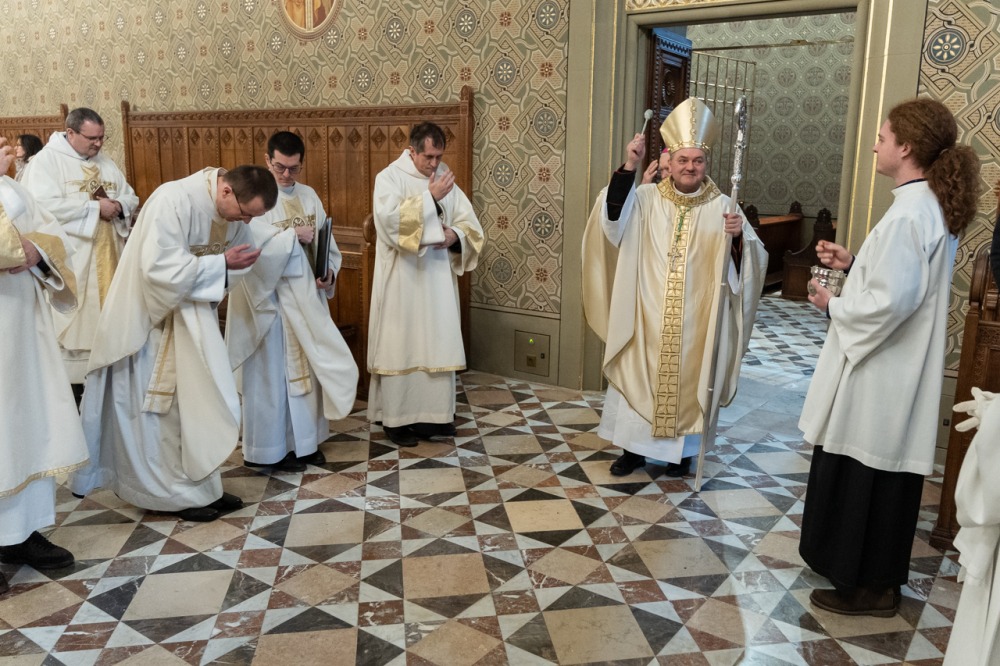 A főpásztor a liturgia bűnbánati részében személyes hangvételű bocsánatkérést fogalmazott meg a papok és a világi hívek felé, akiket 5 éves püspöki szolgálata próbatételes útja során megbántott. A megrendítő bocsánatkérést követően kifejezte szándékát, hogy örömmel, szeretettel és Isten békéjének reményében megerősödve induljunk az új esztendő minden ránk váró feladata elé.