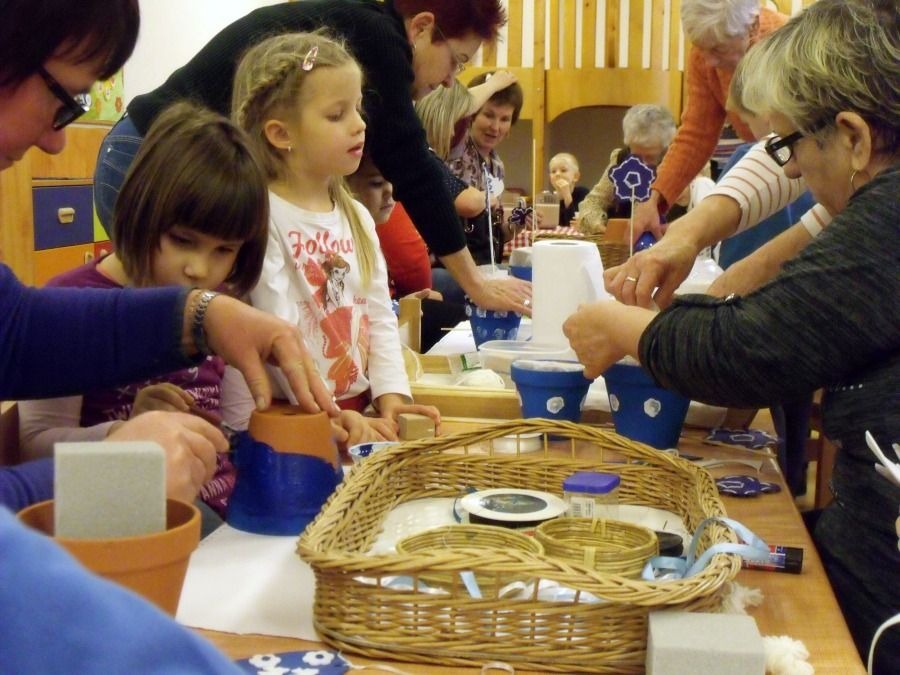 A mamákkal közösen, csoportonként idén is olyan kismesterségeket, tevékenységeket próbálhattak ki a gyerekek, mint például a kékfestőzés, a sváb motívumokkal díszített kendők színezése, rojtozása, agyagedények készítése, cserepek festése, díszítése kékfestő motívumokkal. Babák készültek fakanálból, csutkából, a gyerekek nyakláncot fűztek, díszítettek köténykét és a baranyai svábok jellegzetes lábbelijét, pacskert is.