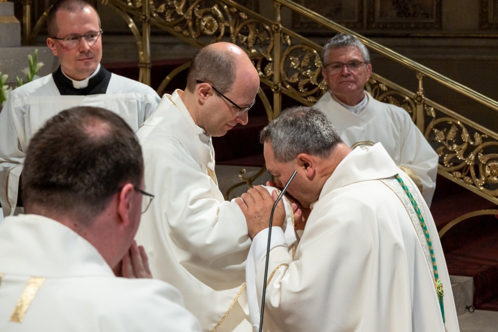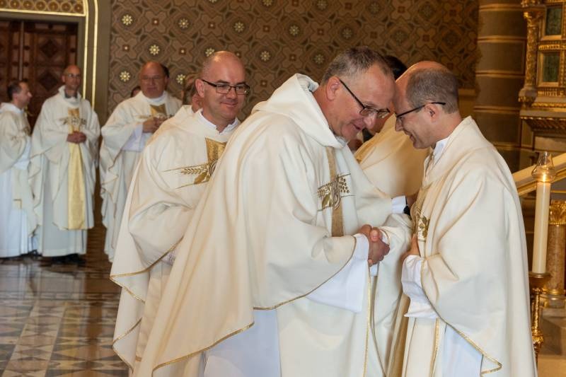 Ezután az új papok békecsókkal köszöntötték az őket felszentelő főpásztort, majd valamennyi jelen lévő pap is békecsókkal köszöntötte az új paptársakat.