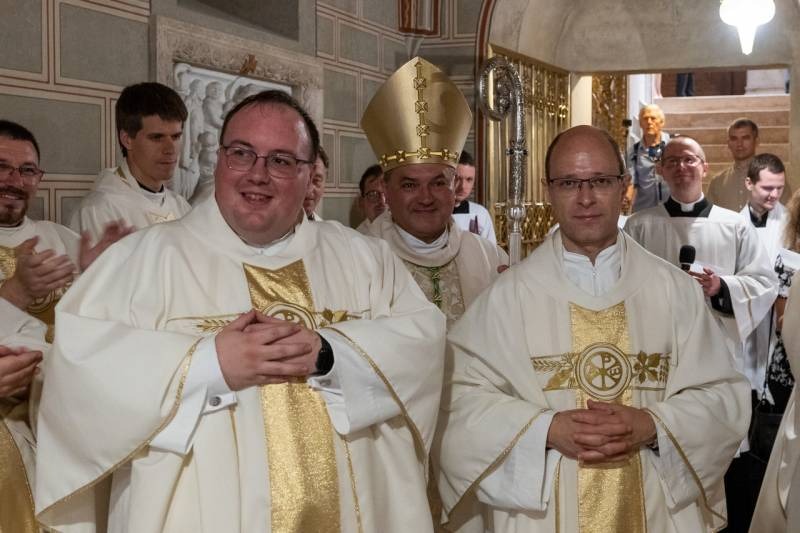 Felföldi László pécsi megyéspüspök áldozópappá szentelte Mihovics Szebasztián és Miklovits Attila diakónusokat június 22-én a pécsi Szent Péter- és Szent Pál-székesegyházban. Az ünnepi szentmisén, melyen jelen volt Mayer Mihály nyugalmazott püspök is, a Pécsi Egyházmegye papsága koncelebrált.