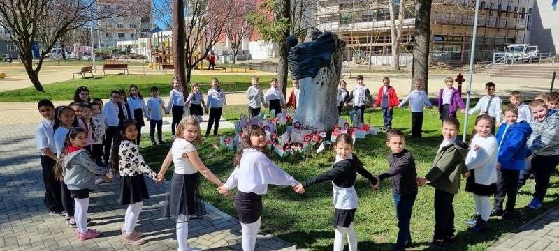 De óvodásaink és 1., 2. osztályosaink is koszorúzással is tisztelegtek az ünnepi esemény előtt.
