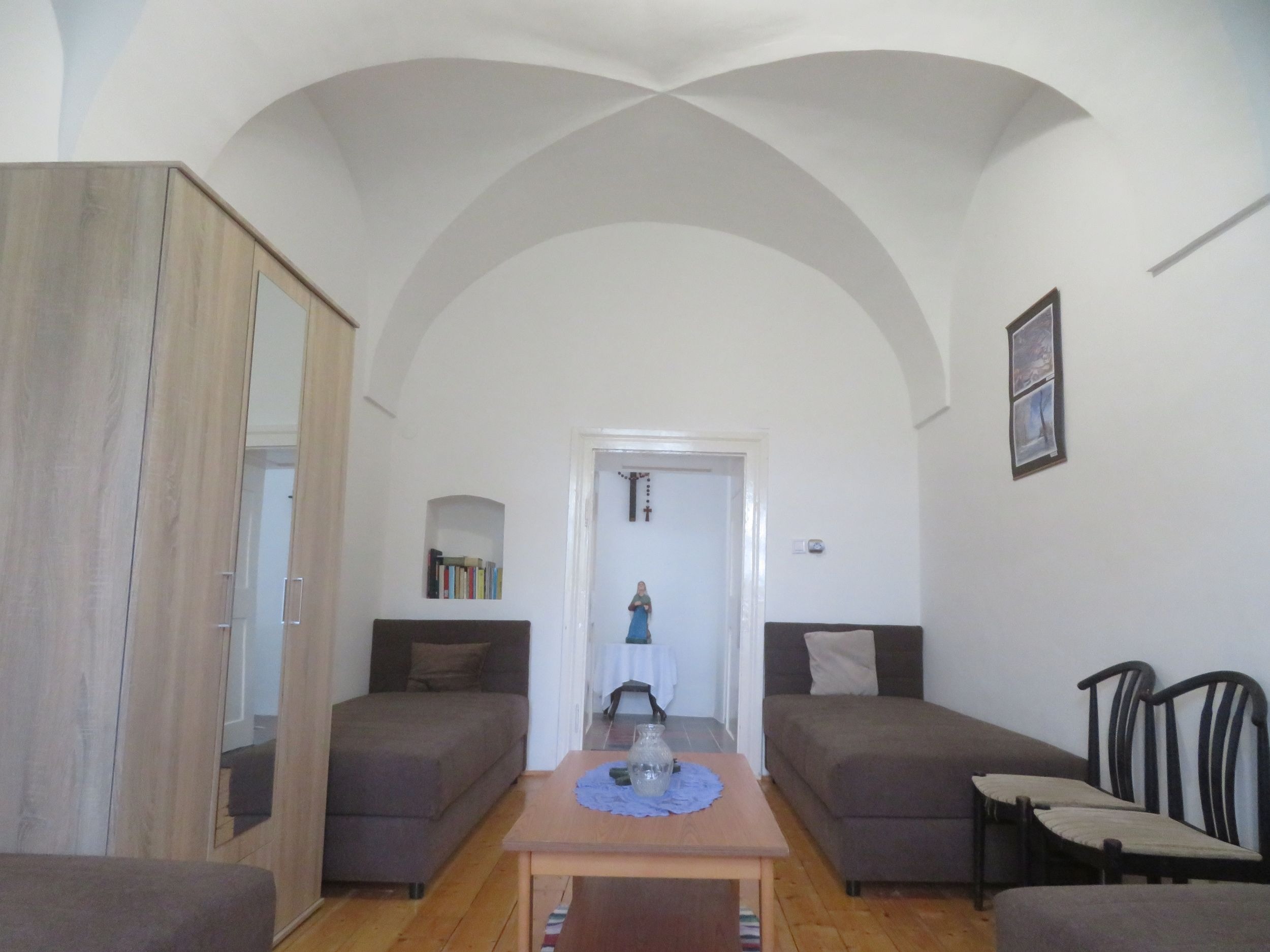 Ezek mellett a Pécsi Egyházmegyei Hivatal további 5 millió forintot biztosított a zarándokház felszerelésére. A beruházásnak köszönhetően teljesen megújultak a vendégszobák, a régi és elhasznált szekrények és ágyak helyébe is újak kerültek és a férőhely jelentősen megnövekedett. A korábbi 28 férőhely tízzel bővült, immár 38 személy elhelyezését tudjuk biztosítani. Valamennyi ágyra új plédek kerültek, a vendégszobák mindegyikébe pedig új, tükrös gardróbszekrények érkeztek. A zarándokház valamennyi ablakára új fényáteresztő és sötétítőfüggöny került felhelyezésre. A vendégszobákban a konyhai ebédlőterembe és a földszinti folyosóra új korszerű lámpatestek kerültek az elhasználódottak helyére. A helyiségek ajtajai új zárakat és hozzá kulcsokat kaptak, így a szobák is zárhatóak. Jelentős fejlesztés még, hogy egy új mosógép, ruhaszárító állvány és egy új szárítógép is elhelyezésre került a földszinti vizesblokkban.