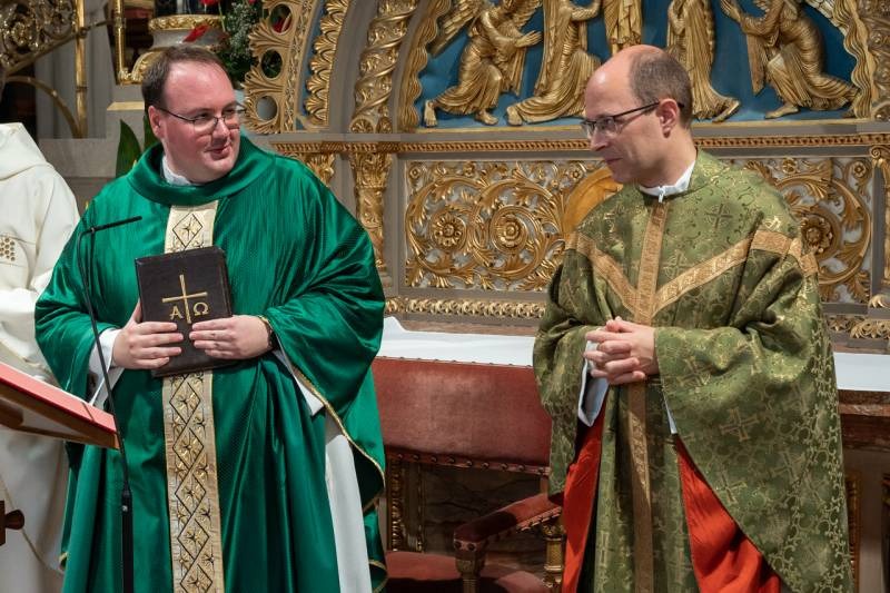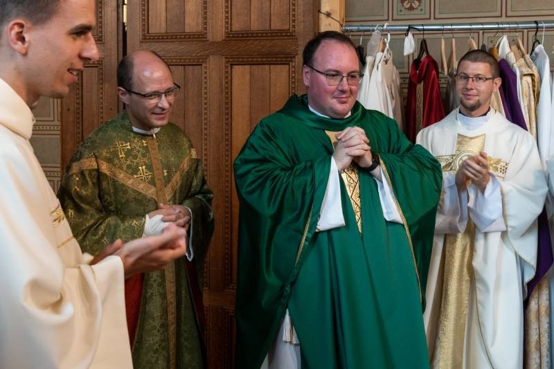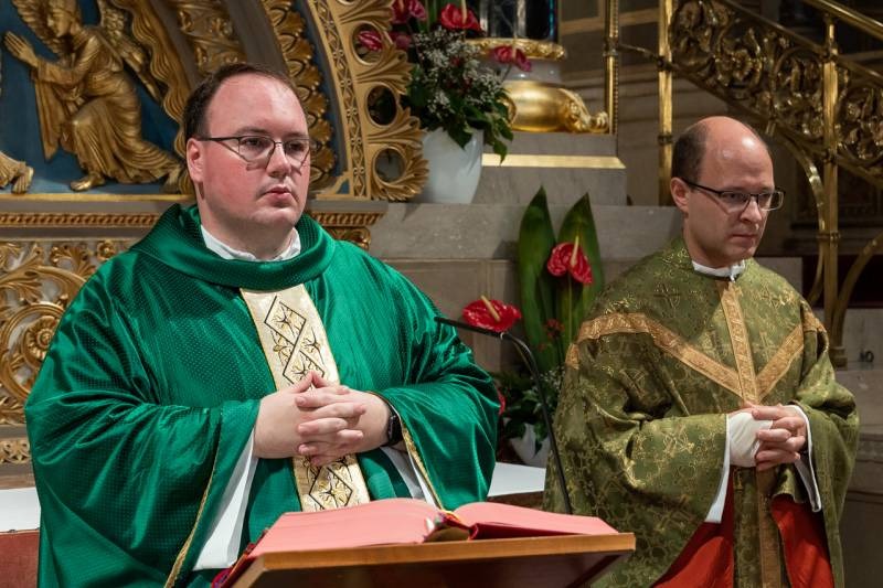A felszentelteknek tulajdonképpen nem az volt az első miséje, hiszen azt a püspökkel együtt mutatták be a papszenteléskor, illetve külön-külön celebráltak már szentmisét abban a templomban, ahova személyes kötődéseik kapcsolják őket, sőt egy nappal korábban a Máriagyűdi Ifjúsági Találkozó záró szentmiséjét is közösen mutatták be. Mégis újmise volt ez is, hiszen először miséztek a székesegyházban, hálát adva a Jóistennek a hivatásukért, valamint az egyházközségben eltöltött diakónusi gyakorlatuk kegyelmeiért.