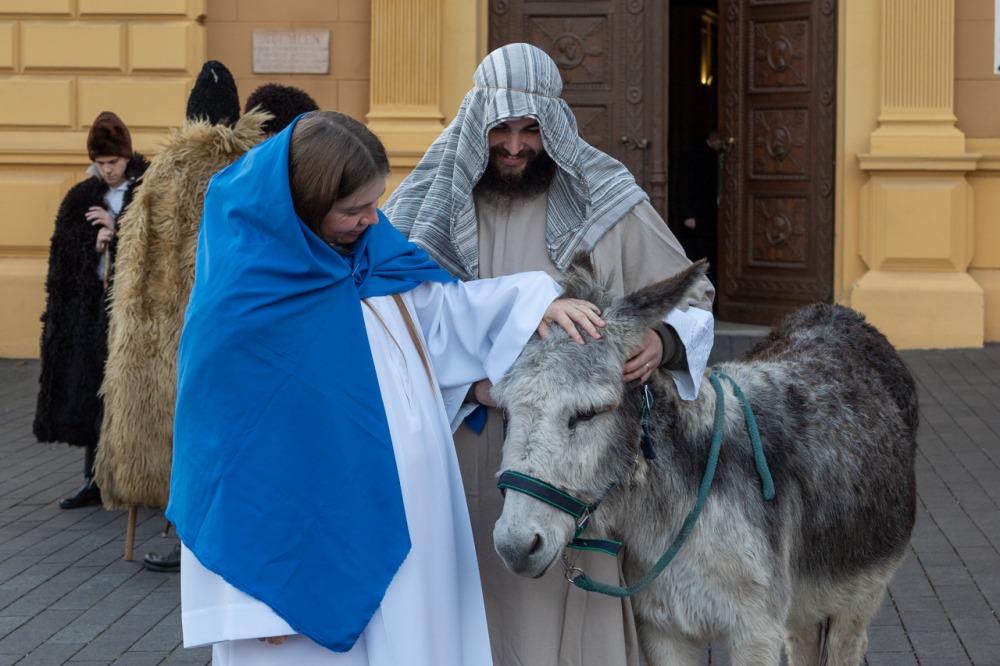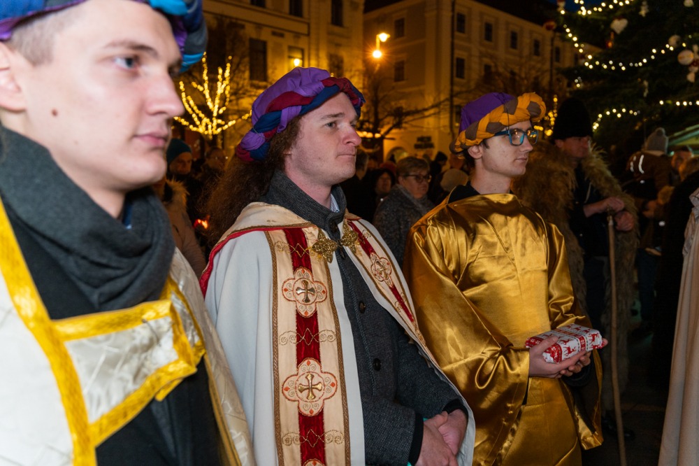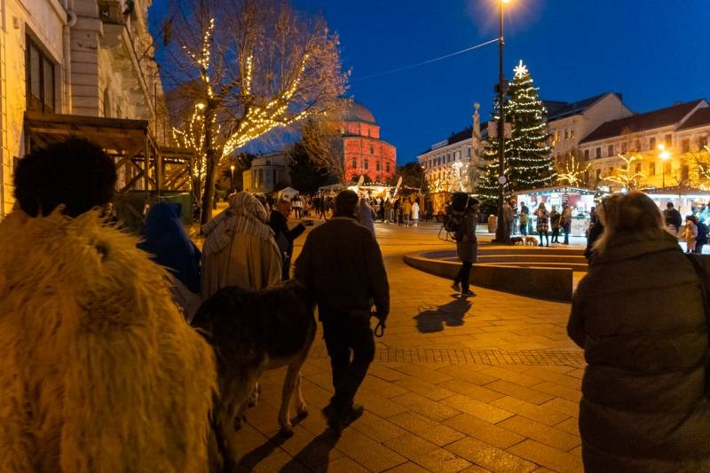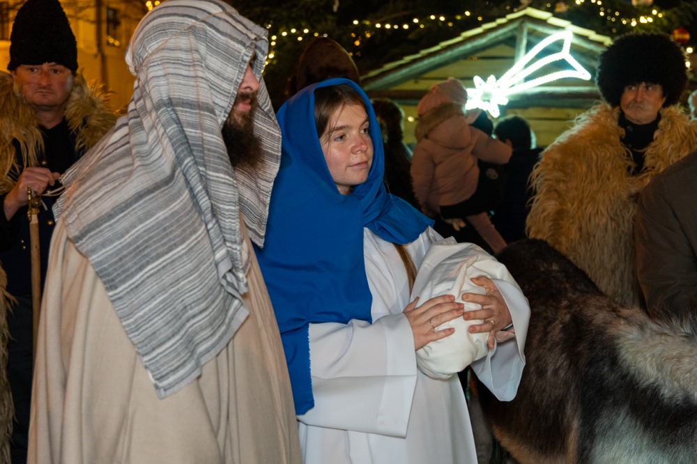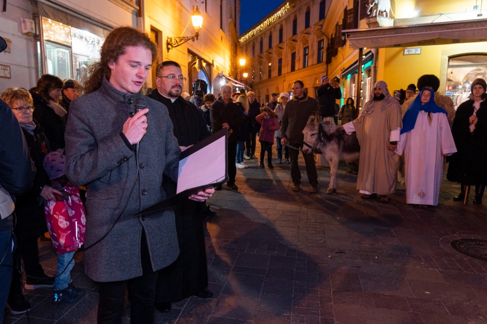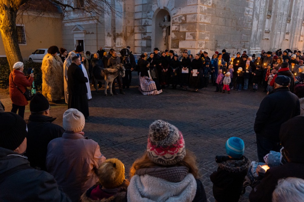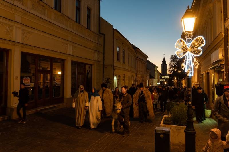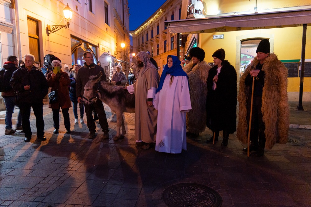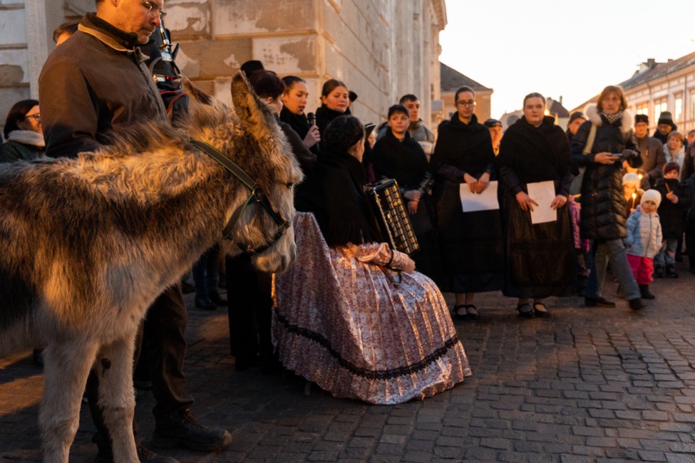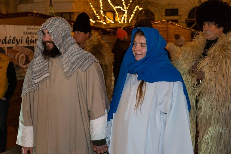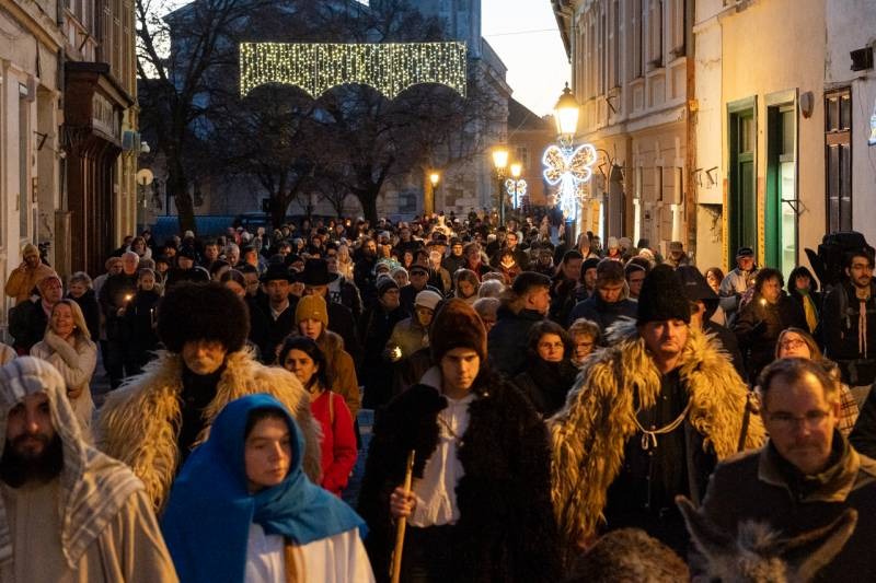 A júdeai Betlehemben szállást kereső Szent Család, Mária és József alakját, a pásztorokat és a napkeleti bölcseket személyesítették meg a misztériumjáték résztvevői. Az őket kísérő több száz fős menet, köztük rengeteg kisgyermek énekes-zenés ájtatosságban idézte fel a születés éjszakáján történteket december 21-én Pécs belvárosában.