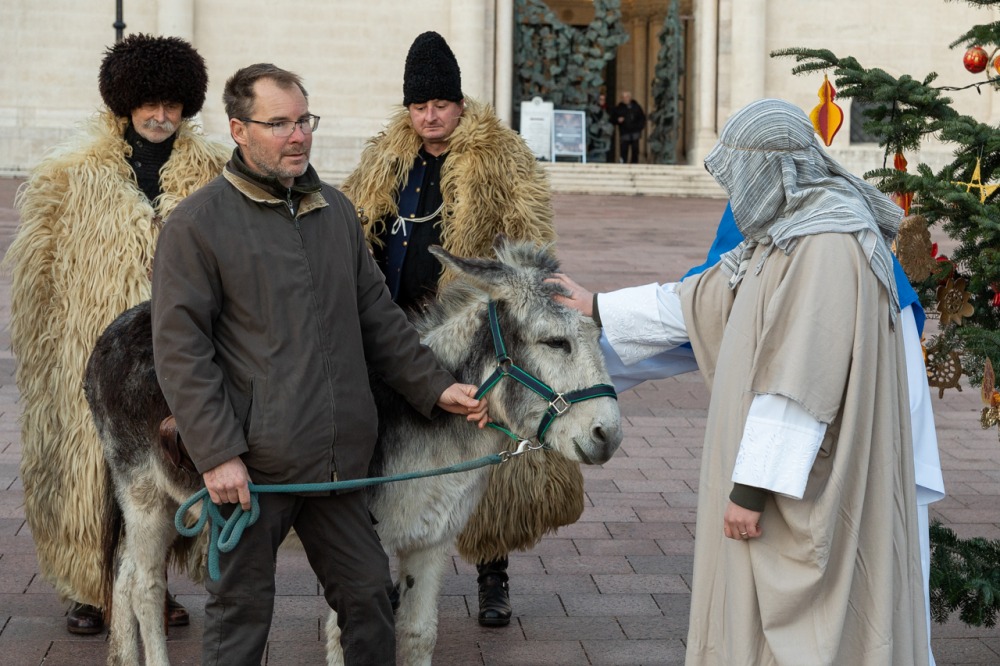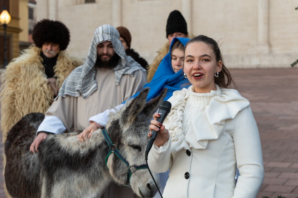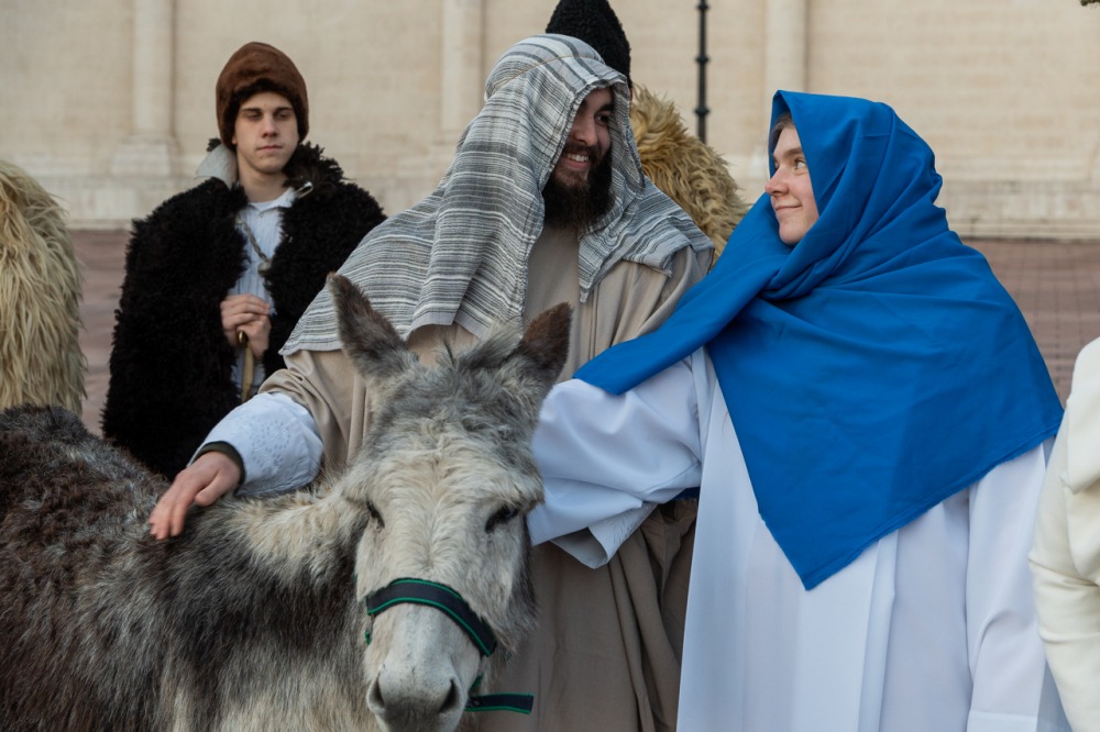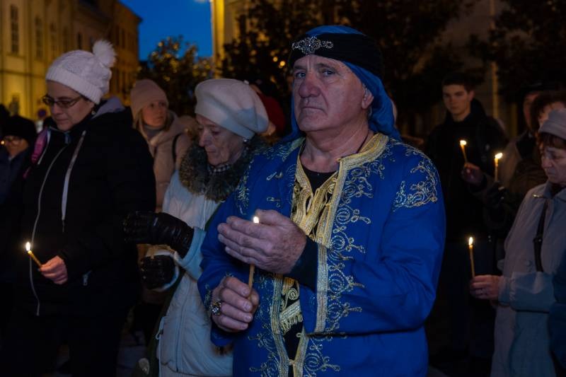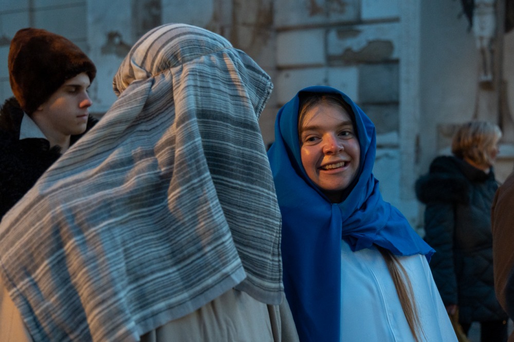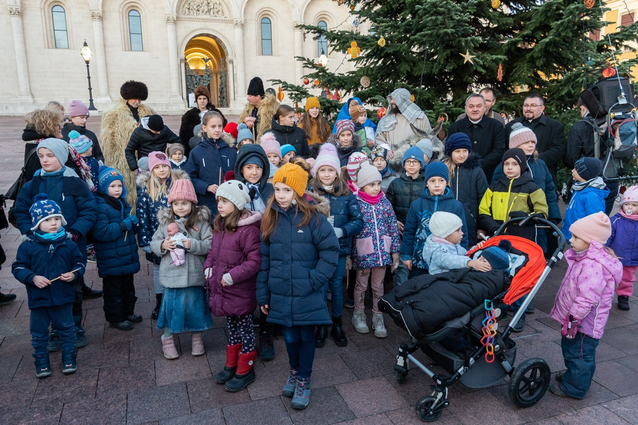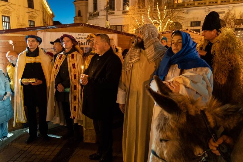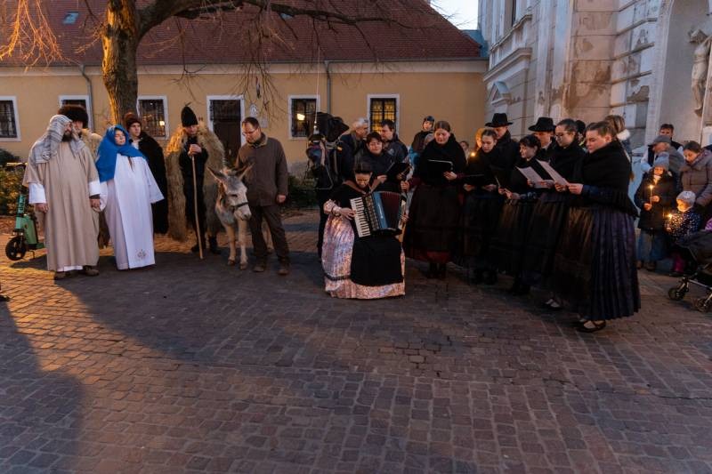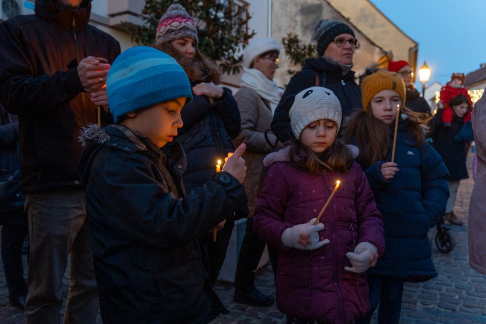 A júdeai Betlehemben szállást kereső Szent Család, Mária és József alakját, a pásztorokat és a napkeleti bölcseket személyesítették meg a misztériumjáték résztvevői. Az őket kísérő több száz fős menet, köztük rengeteg kisgyermek énekes-zenés ájtatosságban idézte fel a születés éjszakáján történteket december 21-én Pécs belvárosában.