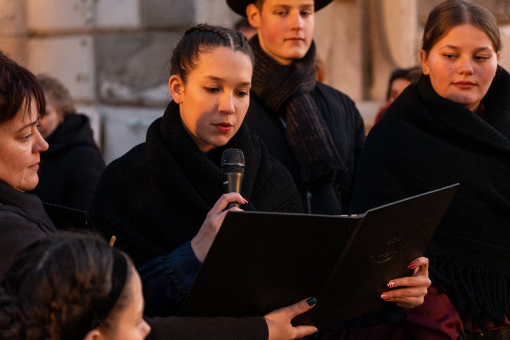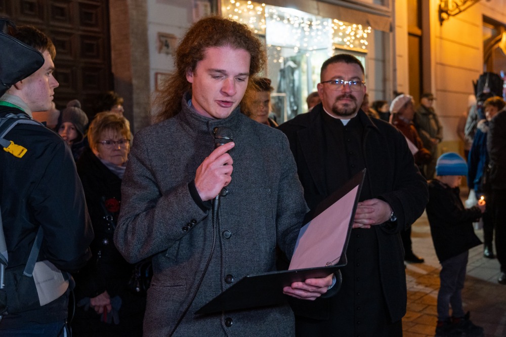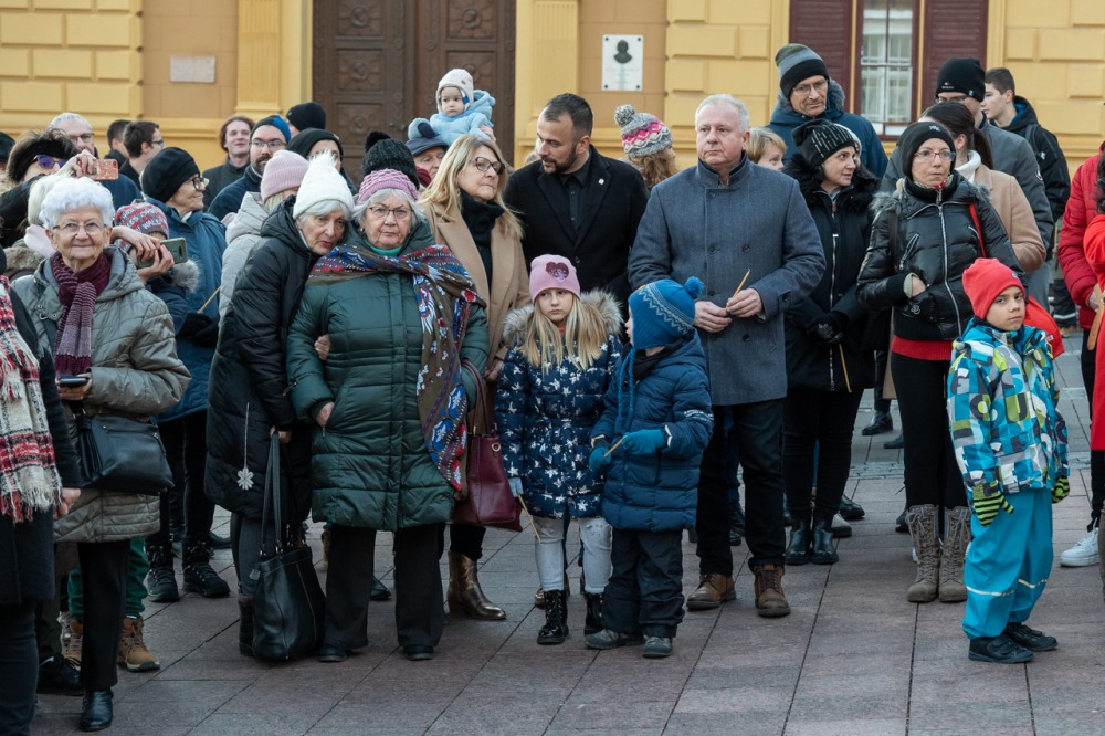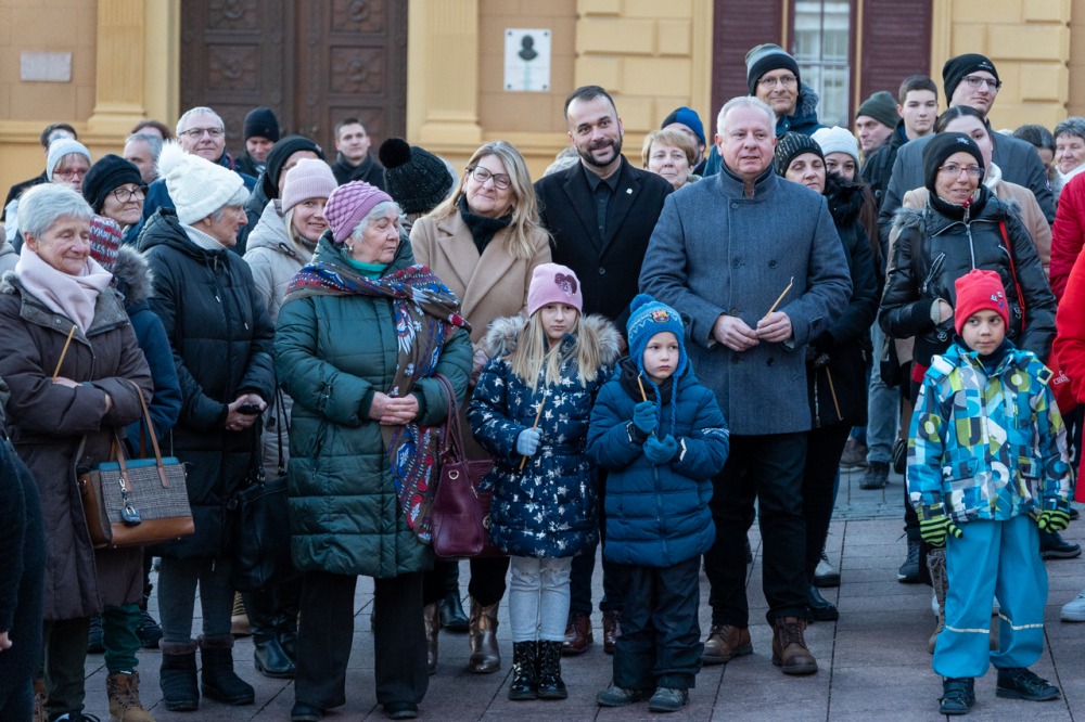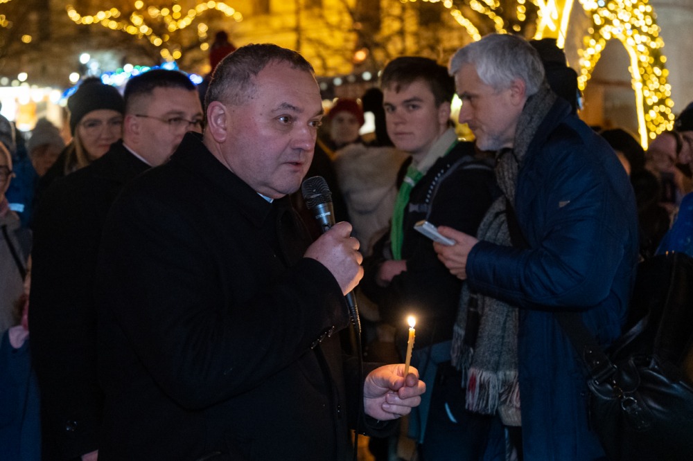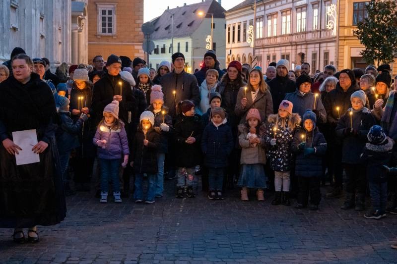 A zenés-imádságos misztériumjáték gyertyagyújtással ért véget Pécs város adventi koszorúján, a Széchenyi téren.