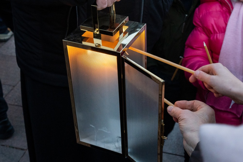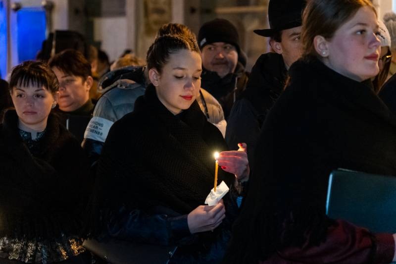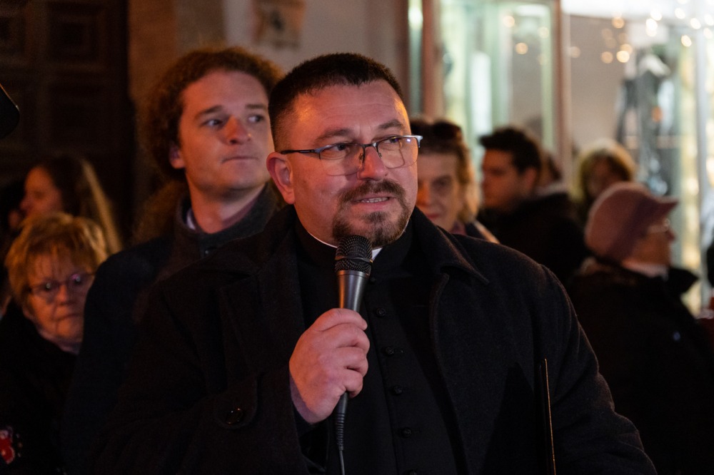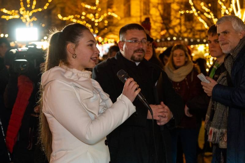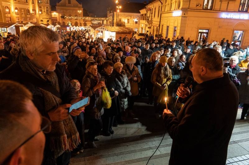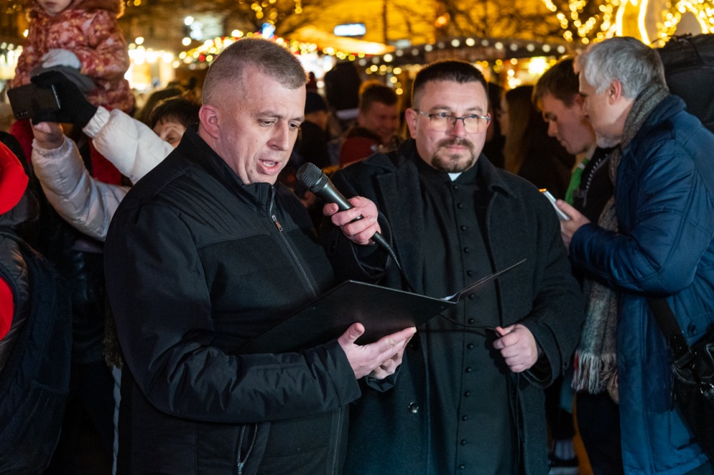 A zenés-imádságos misztériumjáték gyertyagyújtással ért véget Pécs város adventi koszorúján, a Széchenyi téren.