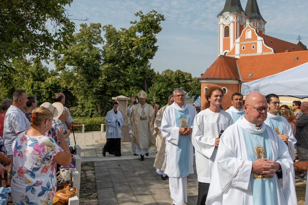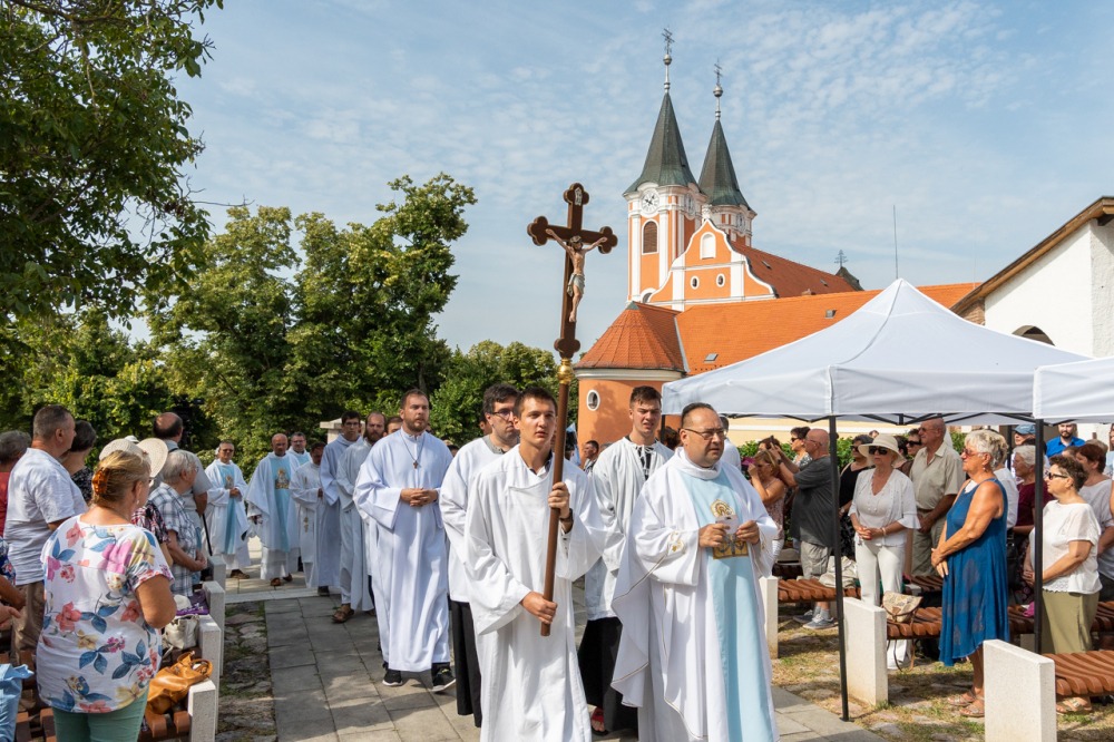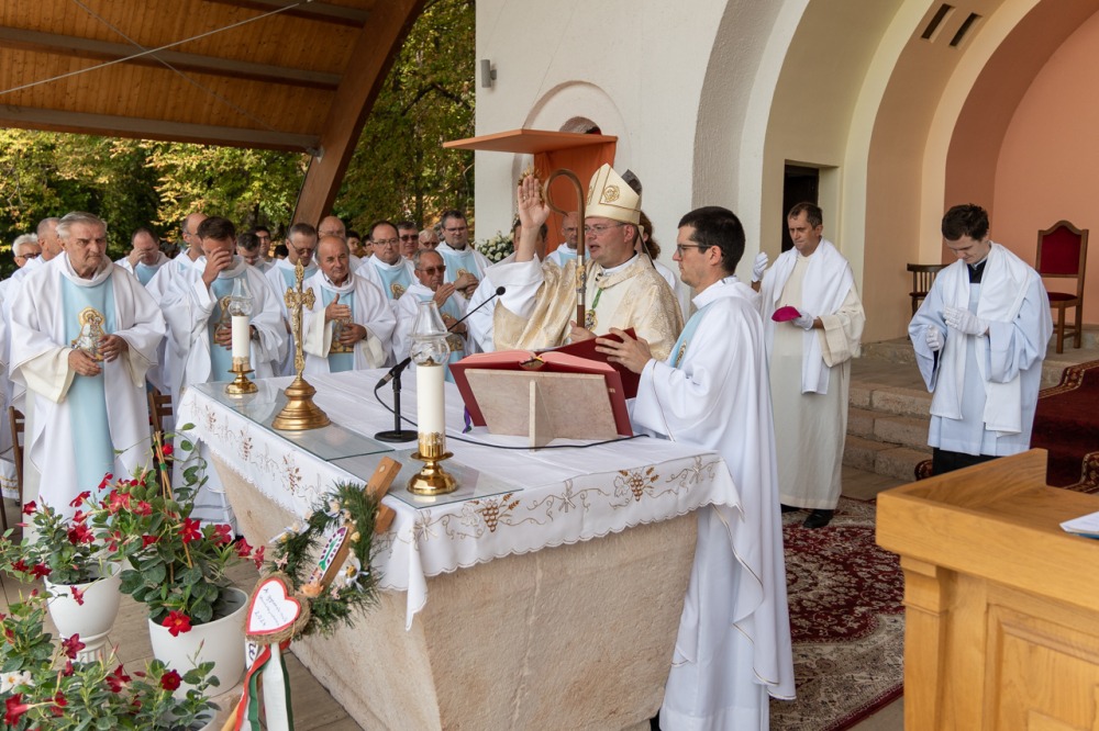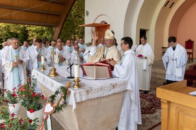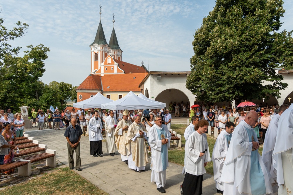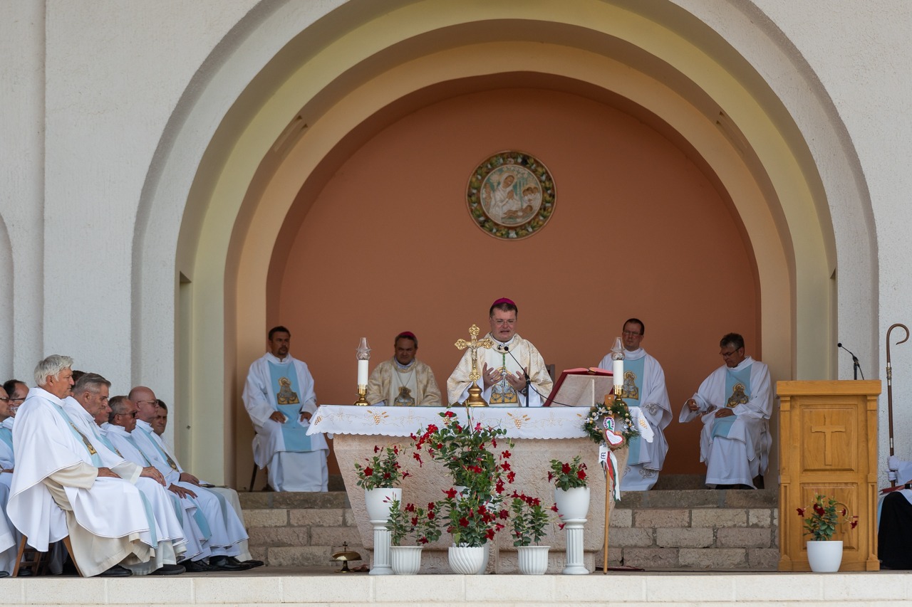 Fekete Szabolcs Benedek szombathelyi segédpüspök szentbeszédében Mária nagyságáról és titkáról elmélkedett. Ahogy fogalmazott, Mária tudott, akart és mert kicsiny lenni, ezért az Úr felmagasztalta őt. Mária élete beteljesedett, testestől-lelkestől az égbe emeltetett, amire mi is mindnyájan vágyakozunk, de be kell látnunk, hogy a mi életünk nem lesz befejezett, amikor földi életünk lezárul.