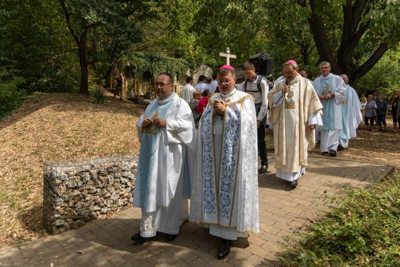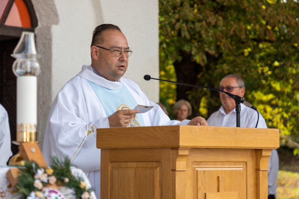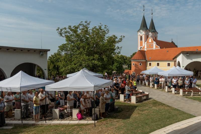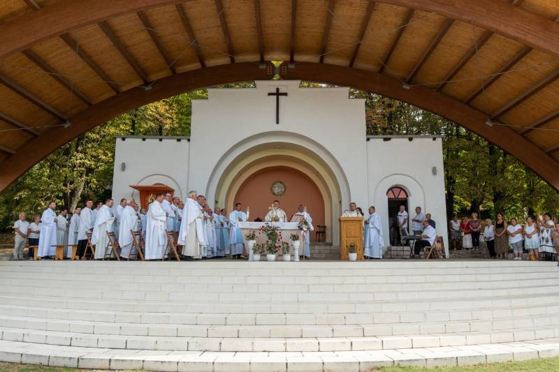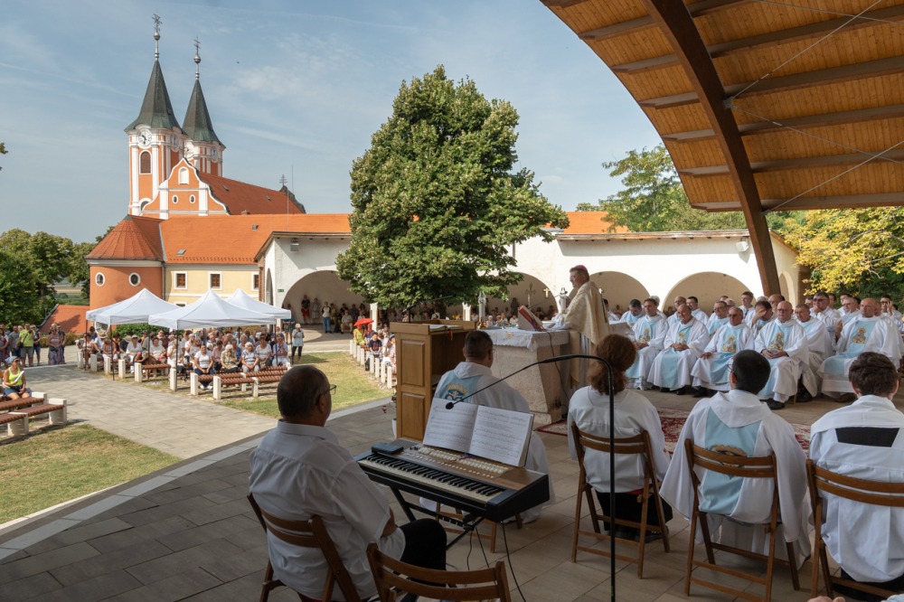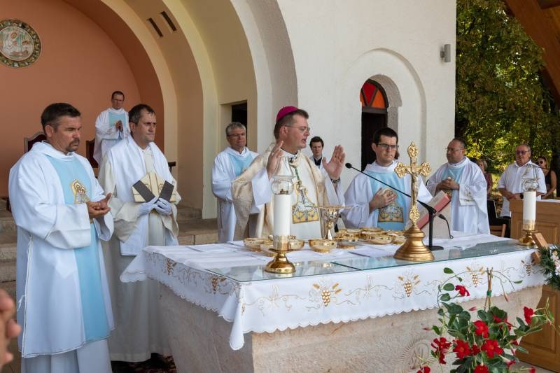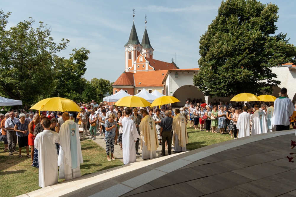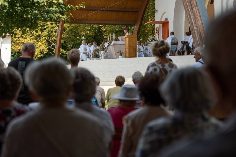 Fekete Szabolcs Benedek szombathelyi segédpüspök szentbeszédében Mária nagyságáról és titkáról elmélkedett. Ahogy fogalmazott, Mária tudott, akart és mert kicsiny lenni, ezért az Úr felmagasztalta őt. Mária élete beteljesedett, testestől-lelkestől az égbe emeltetett, amire mi is mindnyájan vágyakozunk, de be kell látnunk, hogy a mi életünk nem lesz befejezett, amikor földi életünk lezárul.