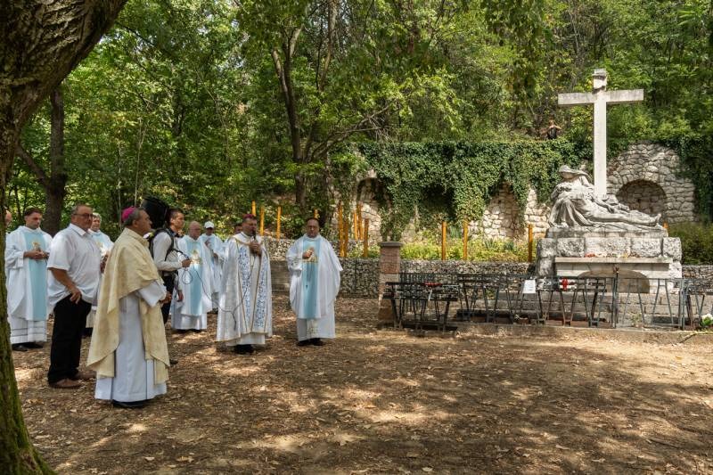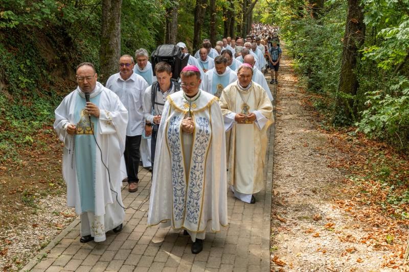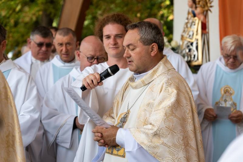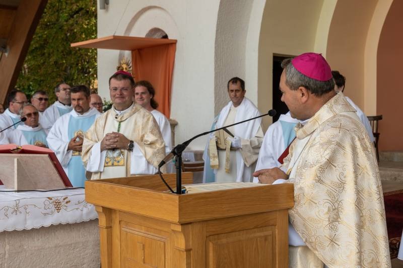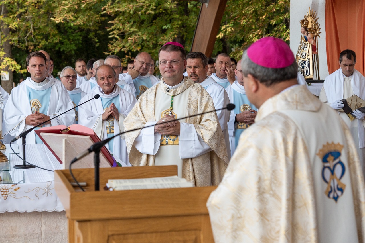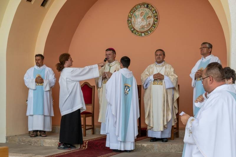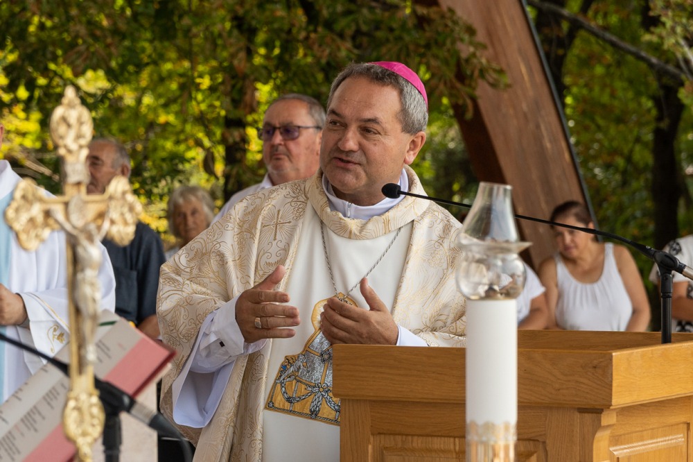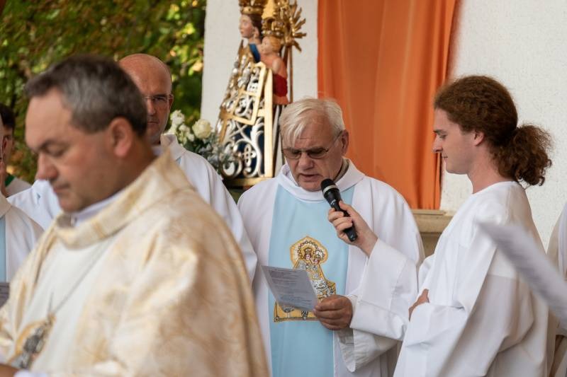 Fekete Szabolcs Benedek szombathelyi segédpüspök szentbeszédében Mária nagyságáról és titkáról elmélkedett. Ahogy fogalmazott, Mária tudott, akart és mert kicsiny lenni, ezért az Úr felmagasztalta őt. Mária élete beteljesedett, testestől-lelkestől az égbe emeltetett, amire mi is mindnyájan vágyakozunk, de be kell látnunk, hogy a mi életünk nem lesz befejezett, amikor földi életünk lezárul.