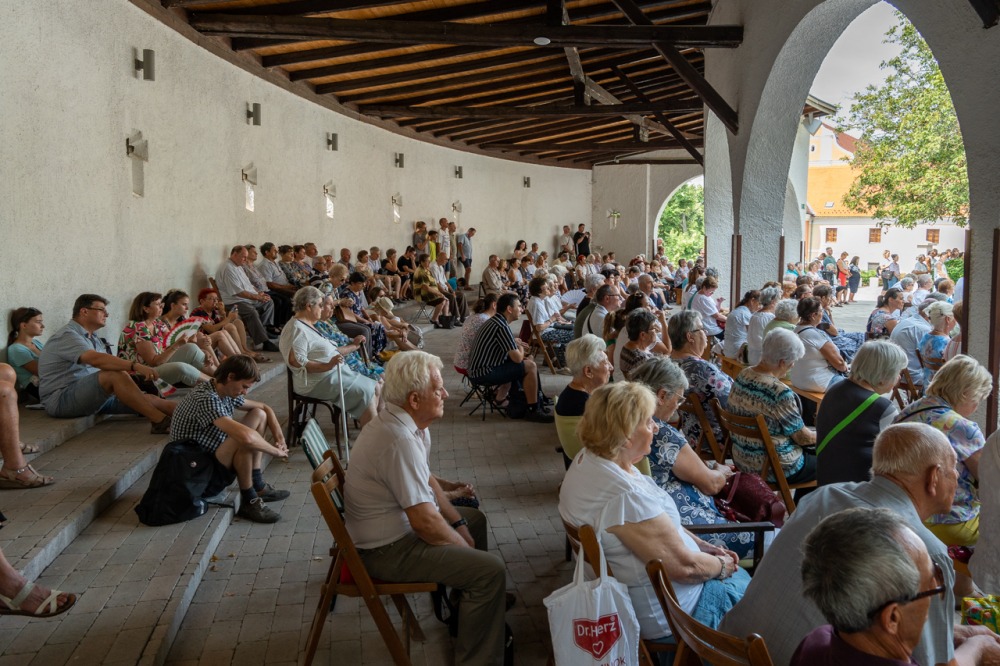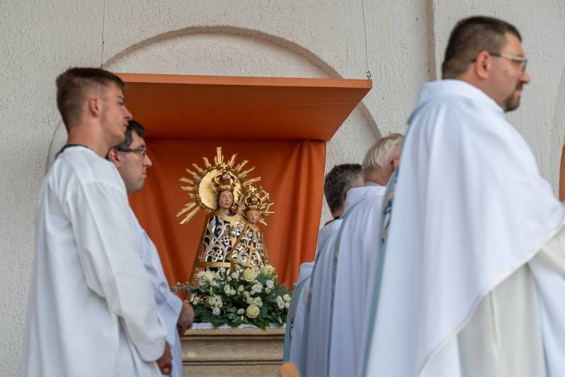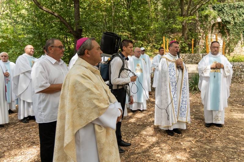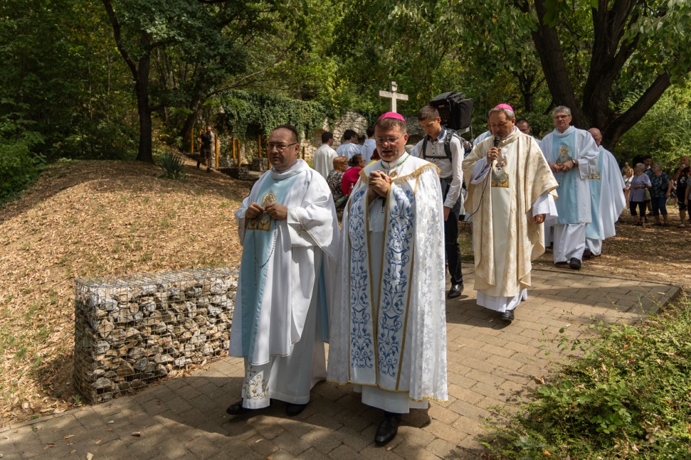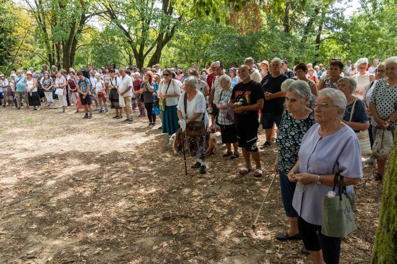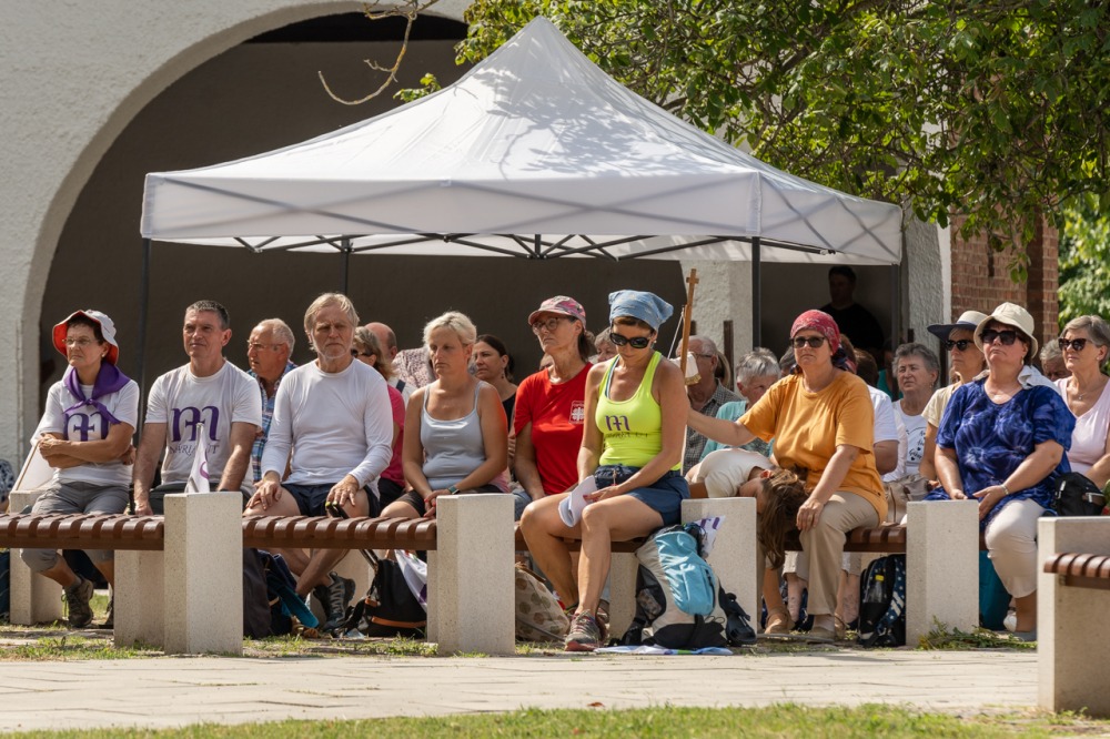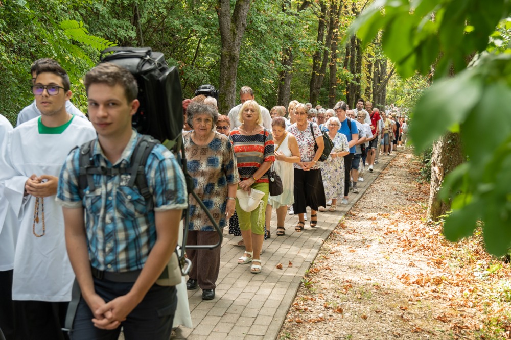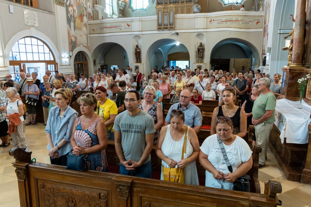 Az emberpróbáló hőség ellenére megtelt a kegyhely hívekkel és zarándokokkal, voltak, akik távolabbi vagy épp szomszédos egyházmegyékből érkeztek. Sárospatakról, Veszprémből, Ásotthalomról is jöttek zarándokok. Az 1Úton nemzetközi zarándoknap résztvevői éjszaka indultak Pécsről, hogy gyalogosan érkezzenek a Tenkes-hegy Fehér Asszonyához, ahogy a környéken nevezik a Máriagyűdi Szűzanyát, akinek kegyszobrát ezen a jeles alkalmon szokás szerint kihozzák a kegytemplomból és a szabadtéri oltár mellé helyezik.