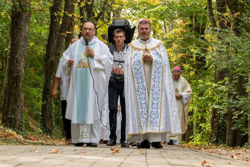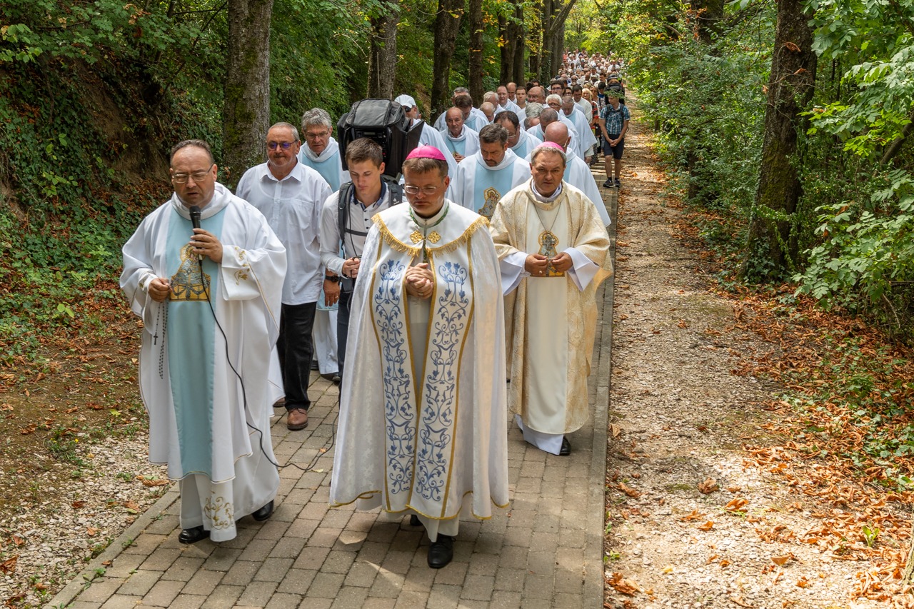 A szentmise után a főcelebráns segédpüspök és Keresztes Andor plébános vezetésével az egyházmegye papsága és a hívek hosszan kígyózó sorokban rózsafüzér körmenettel vonultak a kegyhelyen található Fájdalmas Szűzanya szobrához, hogy terheiket elérakva kérjék Mária közbenjárását az ő Szent Fiánál. Az egyházmegye fogadalmi búcsúja litániával zárult a kegytemplomban.