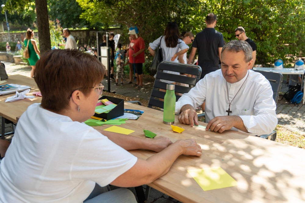 „Amit kínálni tudunk, az a szeretetünk. Az emberi szív és élet titka az öröm, a béke, a gazdag szépszeretet, amit nem méricskélve, hanem túlcsordulóan kell adni. Hiszem, hogy azt fogják itt megtapasztalni, hogy nem méricskélve, hanem túlcsordulóan ajándékozzuk meg önöket. Kívánom, hogy érezzék az itt jelen lévő szeretet és segítőkészség gazdagságát, hogy boldogabb, mosolygósabb, derűsebb és reményteljesebb szívek, emberek és családok térjenek majd innen haza az otthonaikba. Köszönöm, hogy itt vannak, hogy velünk vannak” – fogalmazott a püspök, aki 4 évvel ezelőtt hívta életre a kisgyermekes családok között hatalmas népszerűségnek örvendő, évről-évre nagyobb tömegeket vonzó fesztivált.
