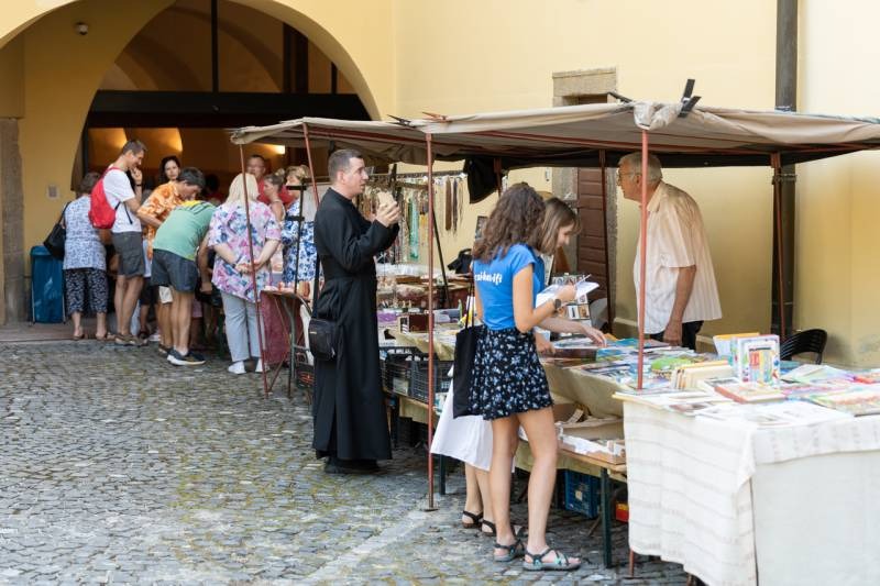 A püspöki palota kocsiszínében idén is lehetőség volt a személyes találkozásra és beszélgetésekre az egyházi, illetve karitatív feladatokat ellátó közösségek, úgy mint a Pécsi Egyházmegyei Katolikus Karitász, a Betegek Gyógyítója Kórházlelkészség, az Assisi Szent Ferenc Betegápoló Nővérek, a Sacré Coeur nővérek, a Magyar Máltai Szeretetszolgálat, a Pécsi Katolikus Egyetemi Lelkészség, a Pécsi Püspöki Hittudományi Főiskola, a Magyar Cserkészszövetség VI. Dél-dunántúli cserkészkerülete, a Pécsi Katifi, a Pécsi Egyházmegye Ministráns Referatúrája, a Pécsi Egyházmegye Horvát Referatúrája, a Pécsi Székesegyház Nagycsaládos Egyesület, a Házas Hétvége Mozgalom, a Szent Margit Ciszterci Iskolaközpont, a Mécses Börtönmissziós Szeretetszolgálat és a Jótékony Nőegylet önkénteseivel és munkatársaival.