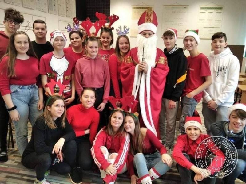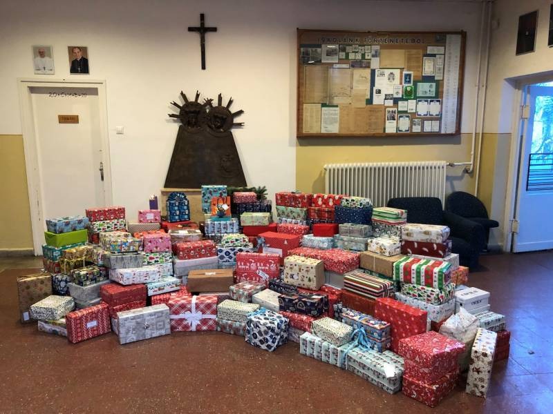 A várakozás alatt nemcsak a gyertyák gyúltak meg a koszorúnkon, hanem lélekben is készülődtek a diákok. Az előző évekhez hasonlóan az iskola idén is csatlakozott a Katolikus Karitász felhívásához. Az Angyalbatyu ajándékgyűjtő akció keretében nehéz sorsú gyermekeknek gyűlt össze több mint 250 ajándék cipősdobozokban gyönyörűen becsomagolva. Öröm volt látni a tanulók lelkes igyekezetét, s azt, hogy alig férnek el iskolai folyosóinkon az adományok.